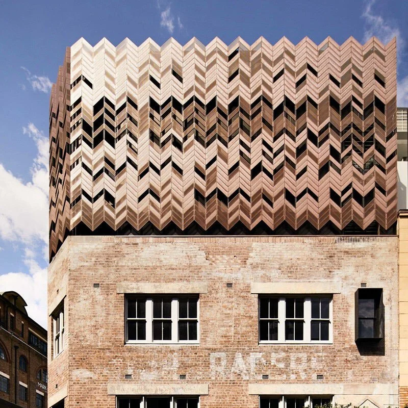 Surry Hills, Paramount House Hotel occupies a 1930s brick warehouse and 1940s office building, formerly the headquarters of Paramount Pictures Studio. Now its a hotel designed by Breathe Architecture.